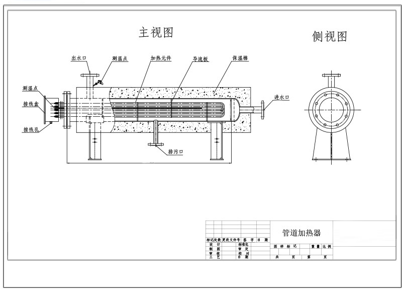 管道辅助电加热器简介: 管道辅助电加热器是在筒状的保温容器内,装入加热管用来加热气体、液体的一种电加热装置。管道式加热器具有加热速度快,保温性能好,加热温度高等特点。 管道加热器有本体和控制系统两部分组成。发热元件采用不锈钢钢管做保护套管,高温电阻合金丝,结晶氧化镁粉,经压缩工艺成型。控制部分采用先进的数字电路,集成电路触发器、高反压可控硅等组成可调测温、恒温系统,保证了电加热器的正常运行。